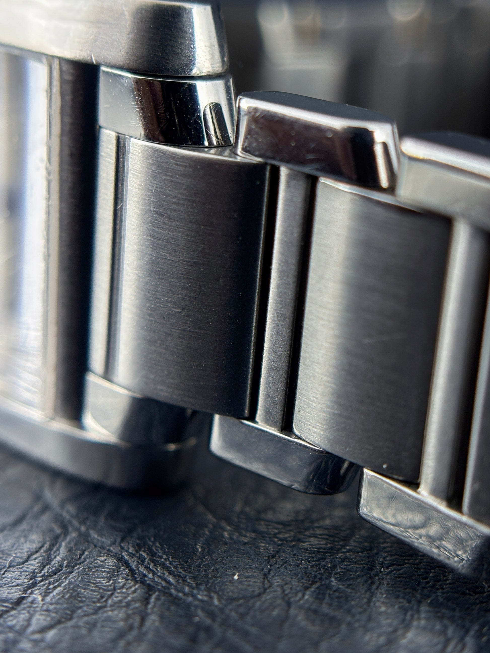 - Bracelet: The integrated stainless steel bracelet is in excellent condition, with a secure hidden butterfly clasp.