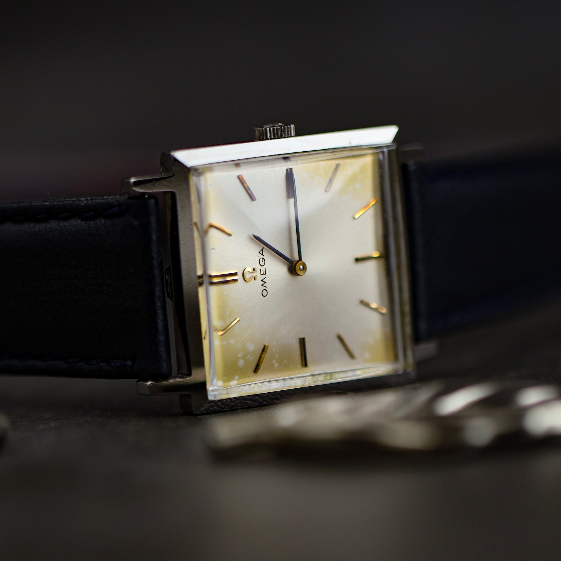 Square Omega dress watches from the early 1960s sit in a sweet spot for collectors. They’re uncommon without being fragile, elegant without being flashy, and distinctly Omega without relying on logos or complications. The patina on this dial tells a real story and gives the watch warmth that polished examples simply don’t have.