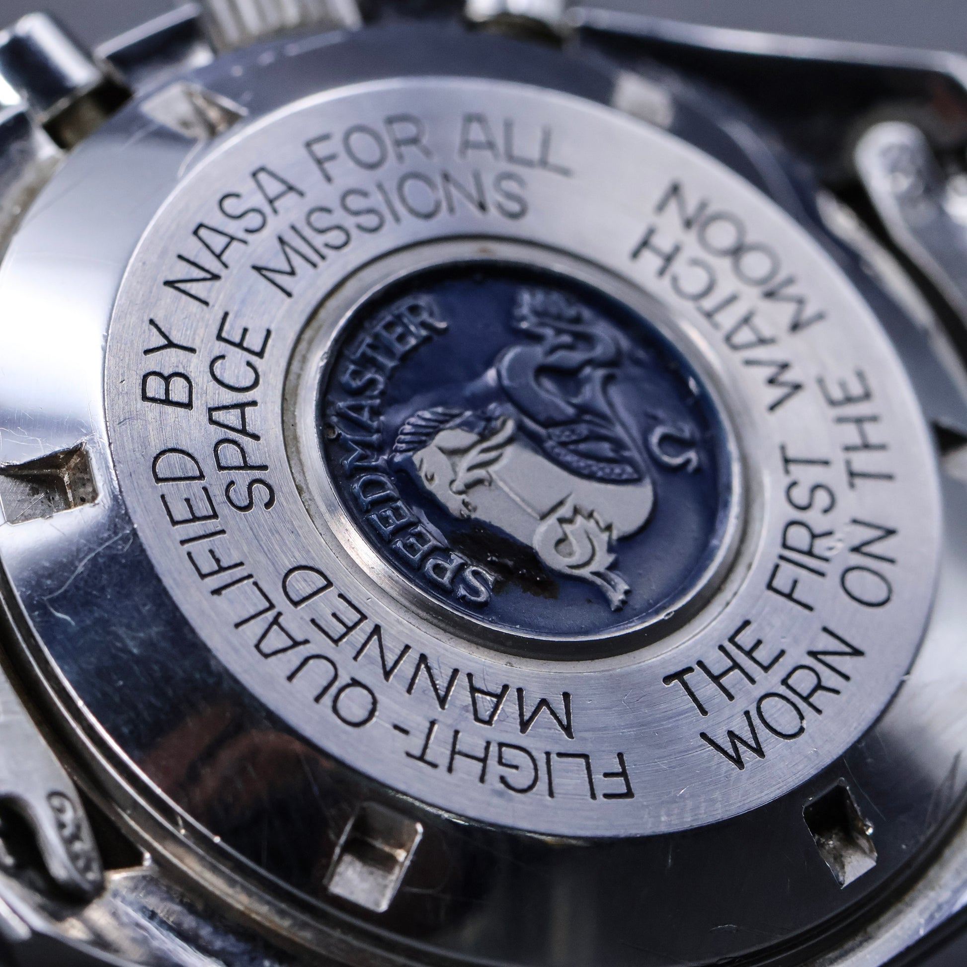 What sets this particular example apart is the caseback. The iconic NASA engraving is present, and crucially, original blue factory sealing lacquer remains intact around the medallion. This blue wax is not ink, paint, or residue. It is factory-applied sealing lacquer used by Omega to secure the medallion and provide an additional moisture barrier.