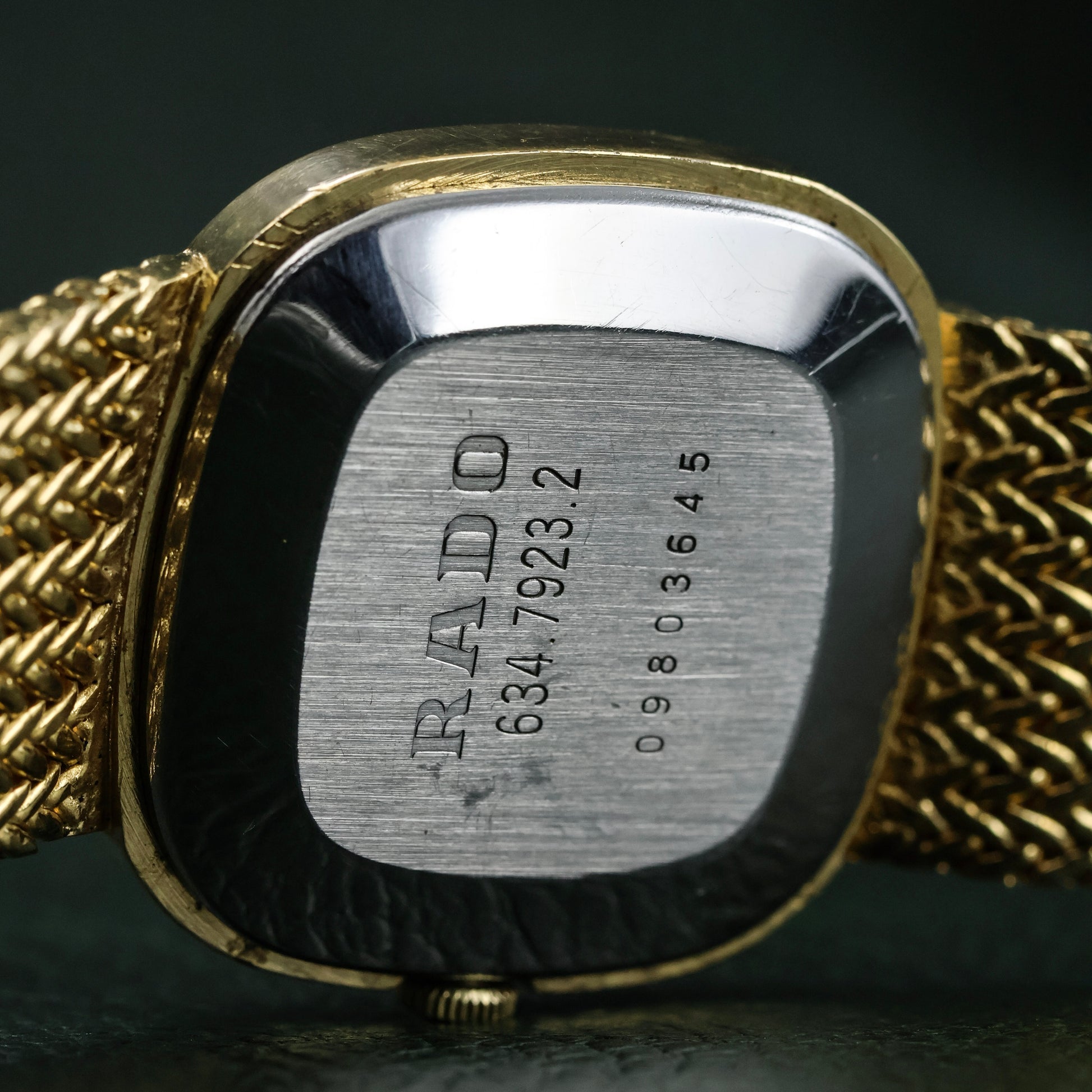 During the 1980s, Rado built a reputation around modern case geometry and integrated designs rather than traditional watch forms. Rectangular gold-plated dress watches like the Ref. 634.7923.2 reflect that approach perfectly. They offer vintage Swiss quality, distinct period design, and everyday usability without unnecessary complexity.