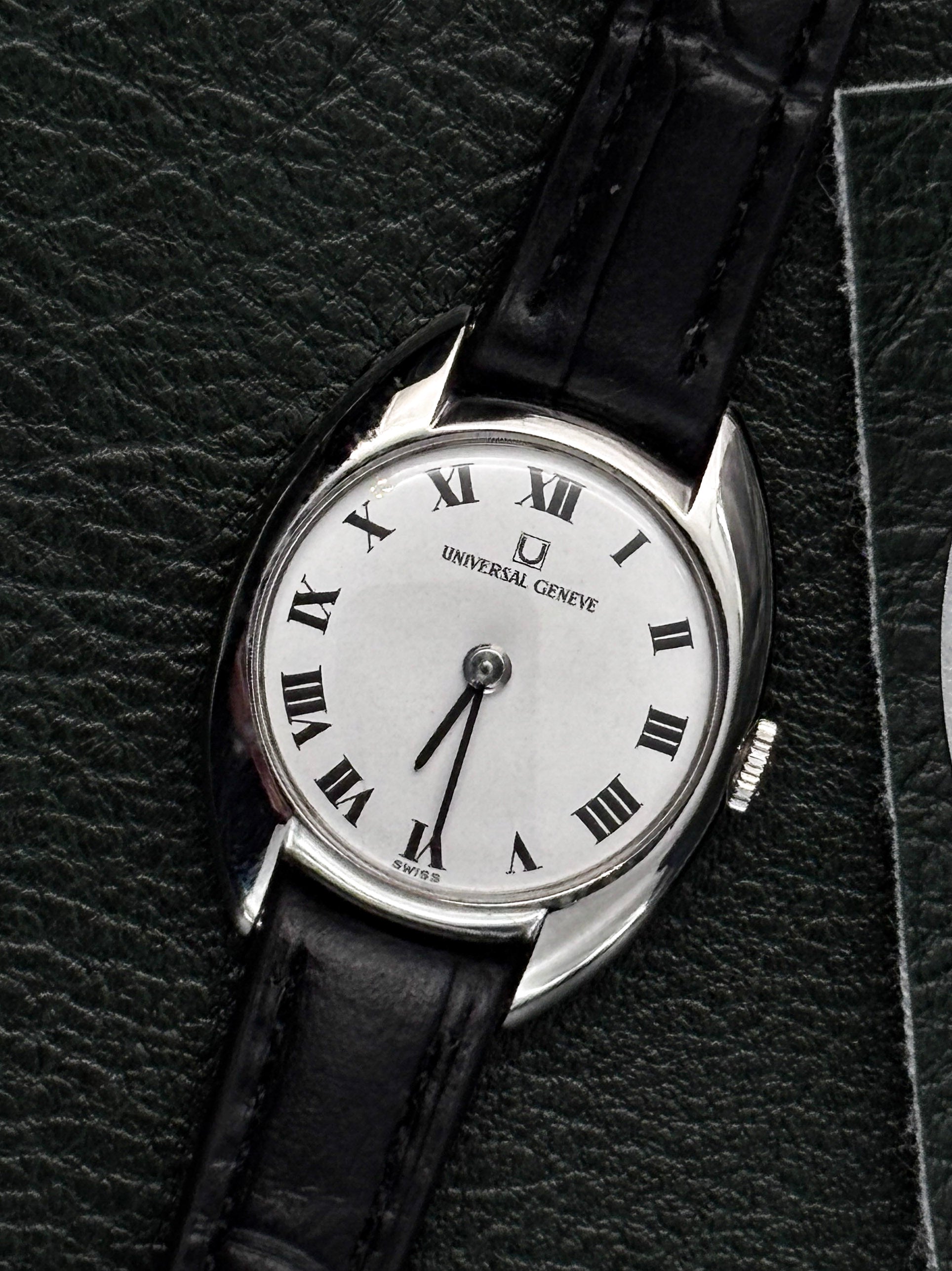 This vintage Universal Genève timepiece is more than just a watch; it is a statement of elegance and a nod to the mid-century mastery of design.